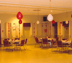 Attach any decorations by masking tape or sticky putty only. All decorations must be removed prior to leaving the hall. Only light-weight decorations may be hung from ceiling or light fixtures.